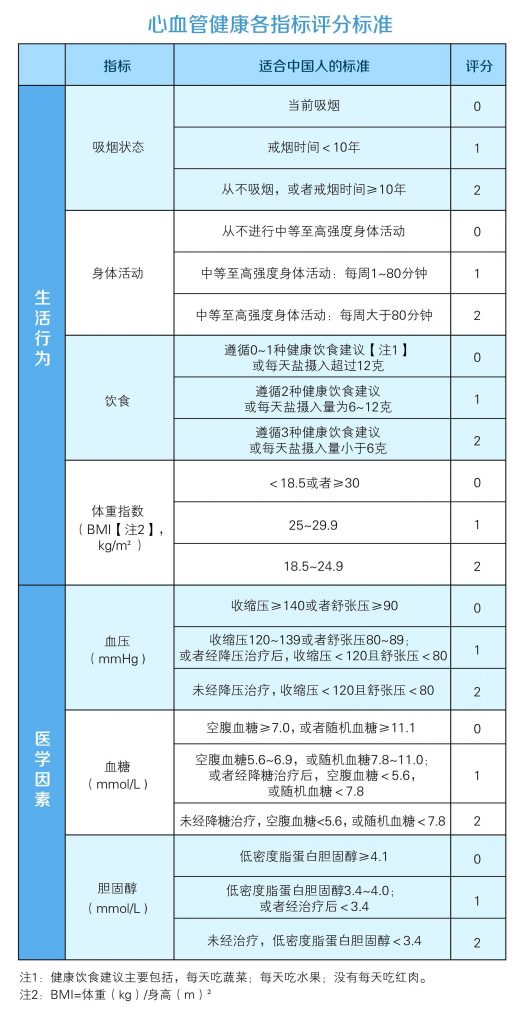 研究人員對美國心臟協(xié)會發(fā)布的評分標準進行了修改,以更適應(yīng)中國人。7項指標具體評分標準見下圖,得分越高表明該指標越健康。